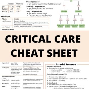 One-page study guide on everything you need to know for your Critical Care/ICU class and clinical rotation!