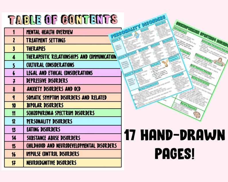Study guide containing all the most important topics covered in a Psychiatric/Mental Health Nursing course!