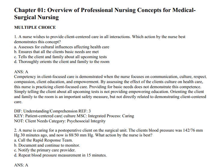 Test Bank for Brunner and Suddarth’s Textbook of Medical Surgical Nursing by Janice