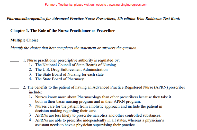 • Test banks come in PDF format; therefore, you do not need specialized software to open them.