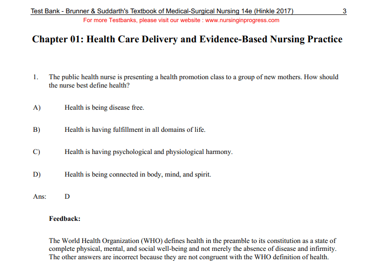 TEST BANK FOR BRUNNER AND SUDDARTH’S TEXTBOOK OF MEDICAL SURGICAL NURSING BY JANICE